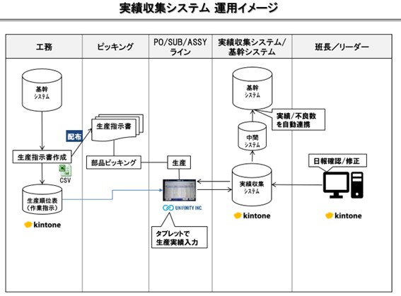もともとは紙の作業日報へ実績を記入していたのですが、今から8年前にタブレットを活用した作業実績登録システムを開発、昨年2024年の10月頃から現在のクラウドとノーコードをベースにしたkintoneとUnifinityのシステムに切り替えています。